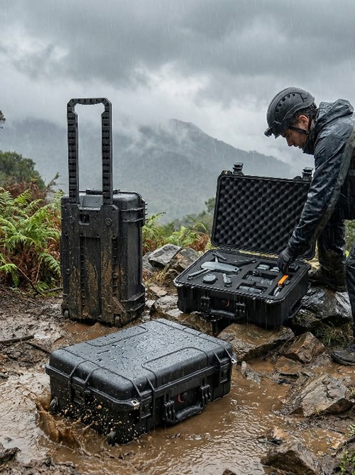 オンサイトエンジニアリングと測量:建設、測量、林業などの屋外作業シナリオにおいて、トータルステーション、GPS機器、ドローン、およびそれらの付属品を砂、雨、衝撃から保護します。
